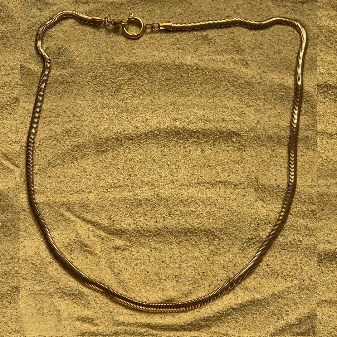 Collar tipo snake de acero inoxidable con baño de oro de 18k. Es una pieza elegante para el día a día y para combinar con más joyas en ocasiones especiales.